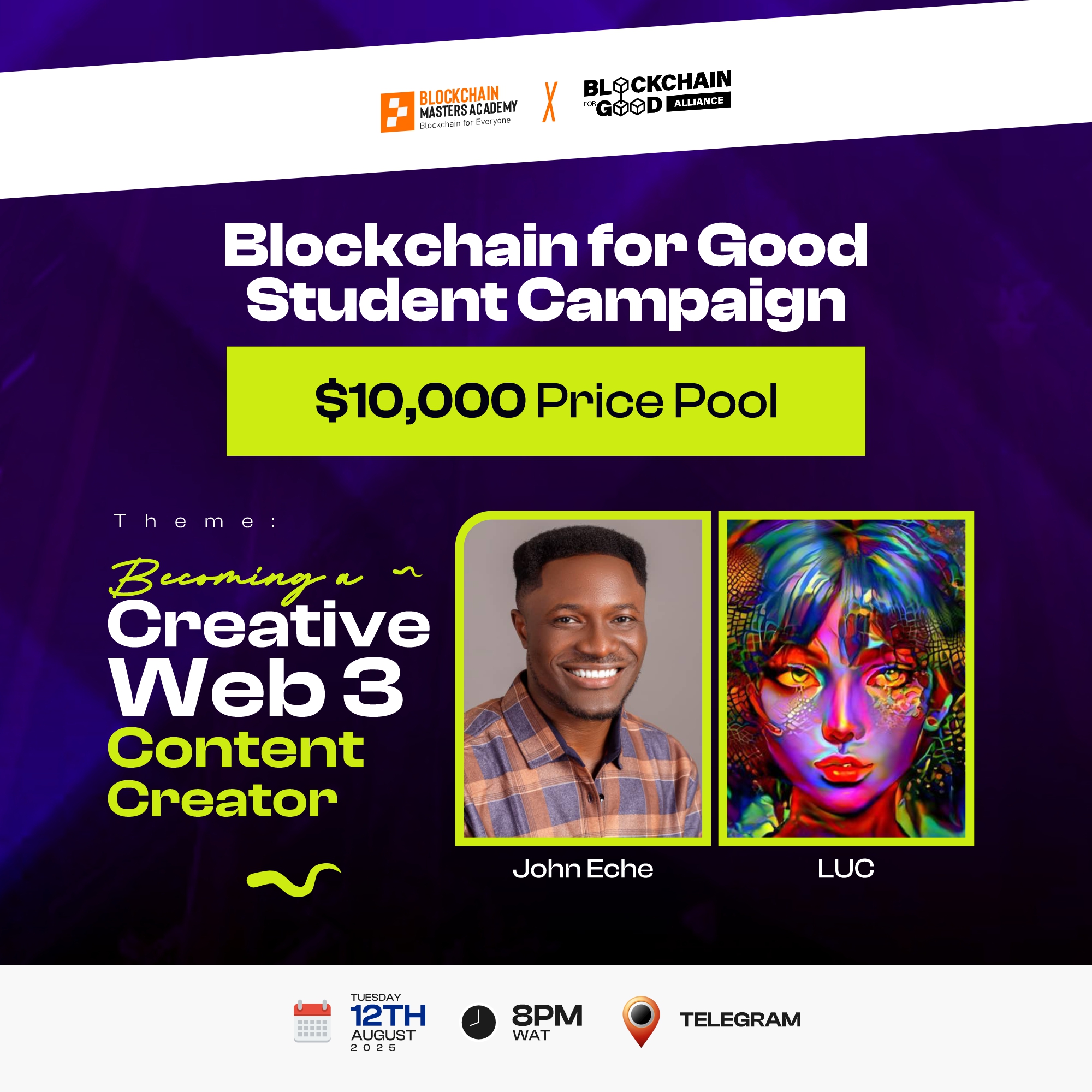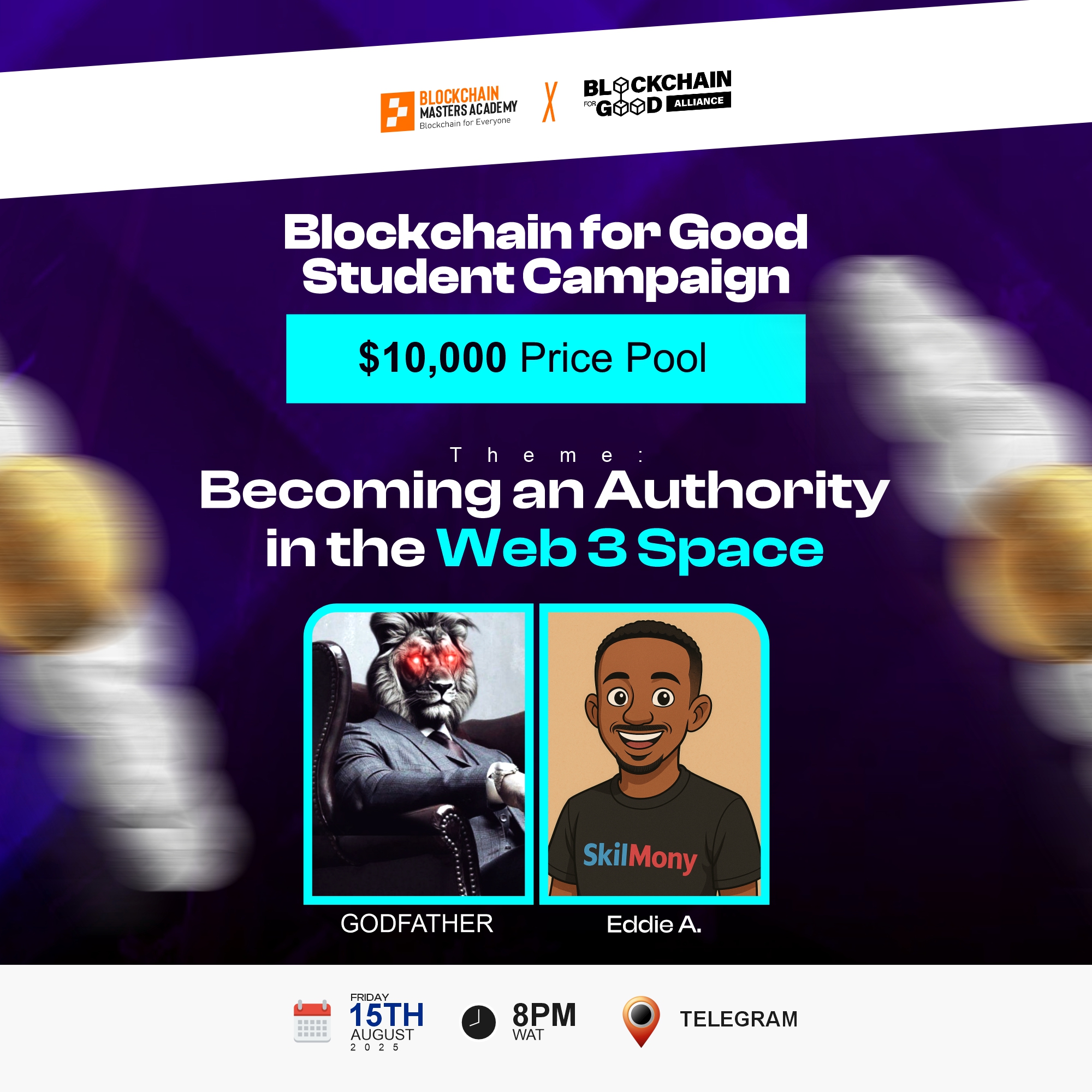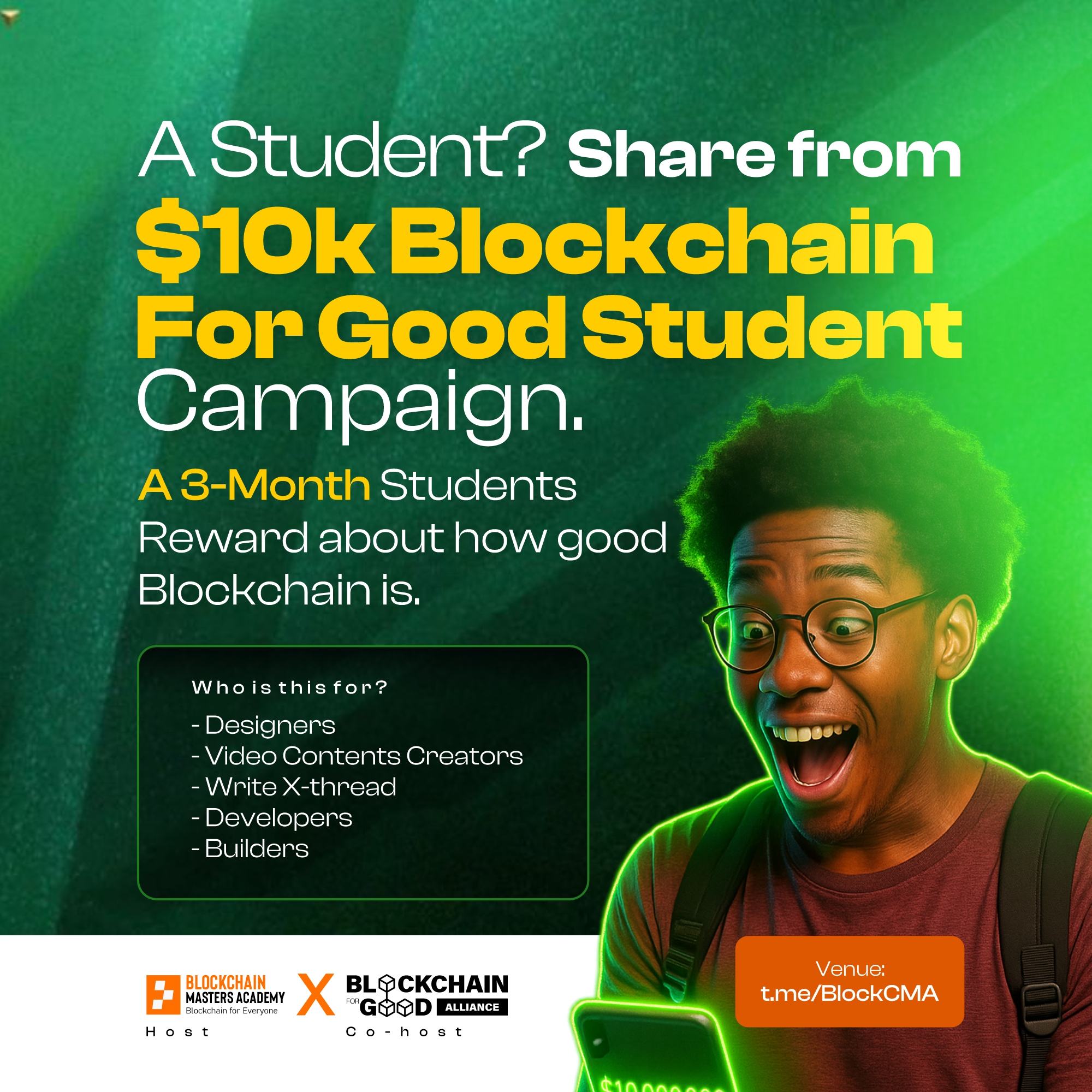 Jobs are everywhere but not for everyone. Yea, you heard that right. We are pleased to host two amazing personalities doing massively on the web 3 space for years now. They will be sharing so much alphas that would land you your next job opportunity. Blockchain for Good Student Campaign isn't just for the $10k prize but has lot of opportunities you ought not to miss 😊. Imagine joining a campaign doing so much for fun and landing your dream job 😲